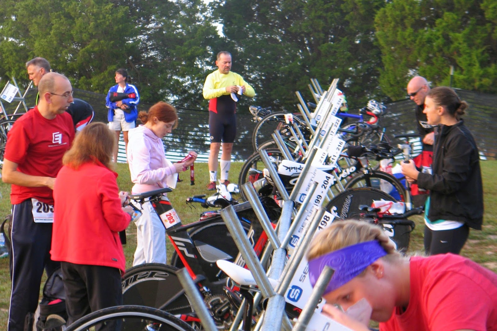 We woke up early again for part 2 of the Giant Acorn Double weekend. I was tired but also excited as I knew even more of my tri pals were racing this one. Again, we had great weather and this time a bunch of my pals were near me in transition which made it a lot more fun. I had another mini race belt drama as I lost a snap cover from my race number belt, (found later) but luckily Nancy had extra and my race number was saved.