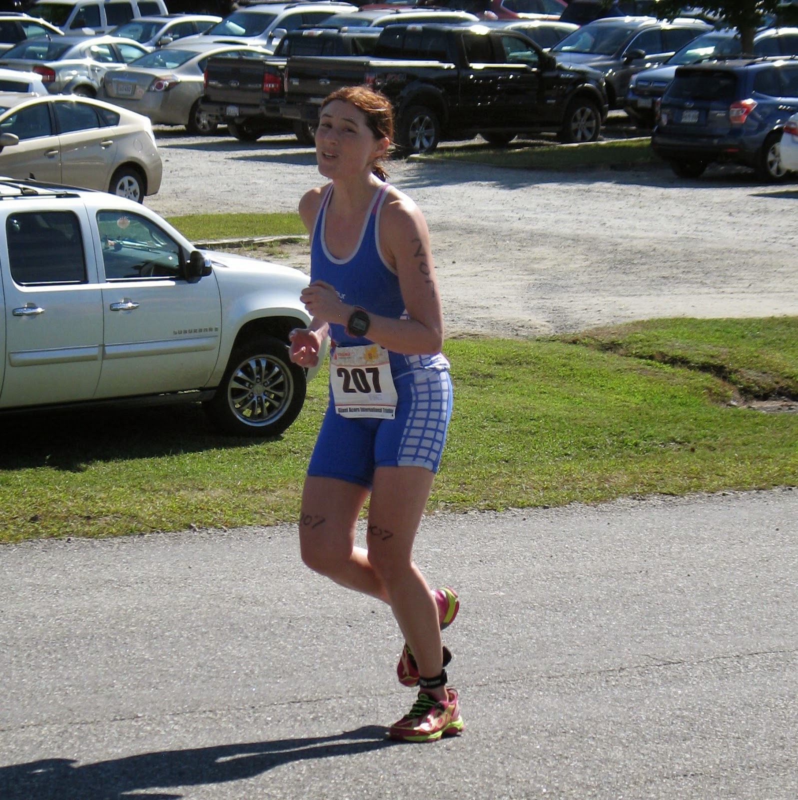 My legs were heavy on the run as well. They felt like imposters…not MY run legs that have taken me through the season. I saw all kinds of my friends out supporting and along the course and saw Nick a few times since it was a 2 loop affair, which gave me an added push to keep going. I was exhausted and looked at the patches of grass on the side of the road contemplating a quick nap, to just give in and stop would be great but I held on and kept running, and running. It was just a 10K but felt like time had slowed down or the distance was longer.