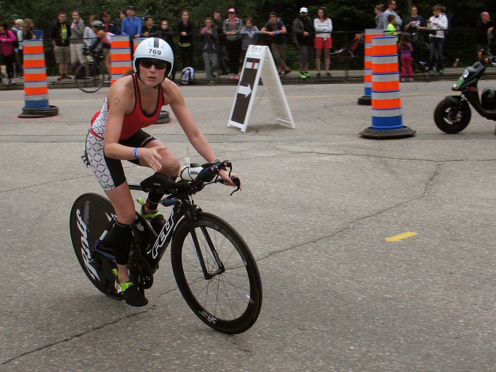 I turned my garmin edge and my 910xt off and on a few times hoping to get a power read but neither would sync.  I had cadence but no power so I was furious but I know Chad was out there dealing with the same thing and crushing it so I had to as well.   I know what zone 2 feels like so kept riding.  Halfway through, the Garmin started reading the Quarq and it was showing 3K watts which was clearly a mistake, ha!  The climbs I faced at the MT70.3 were…still there but this time I was feeling prepared and ready.   I tactfully executed the climbs although I have to power data to back up my claims, I know I was wise and efficient.   The power meter teaches us what it feels like so you “know” what zone you are in with out really needing to see the data.  The little stretch out into town is an interesting pick me up.  I was passed by a large amount of men on this stretch who must have been blowing themselves up a tad basking in the energy of the crowd lined quaint little Centreville town stretch but I quickly found many of them and regained position once we were back out on the highway.  I like that mental reprieve this section offers and the way Mont Tremblant is showing off the adorable town by making it a highlight of the bike with the crowd lined streets.
