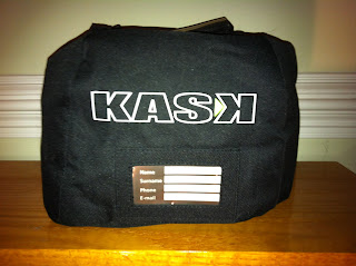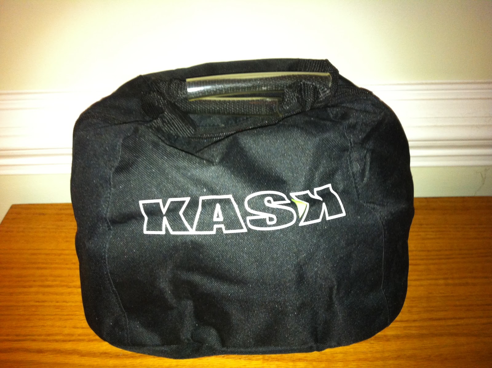 This helmet’s packaging is sleek and attractive.  I’m sure I fell for that marketing message in closing the deal after that New England Pro, Heather’s work of sheer helmet art had me initially smitten this summer.  Further, it comes with a cool bag with easy to carry handles, soft interior to prevent scratching and bottom vents, I guess to make sure the air inside the bag isn’t so stale. The bag even has a place for your ID.