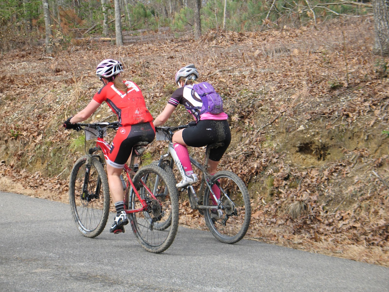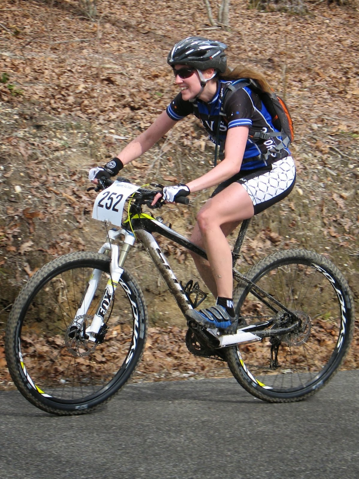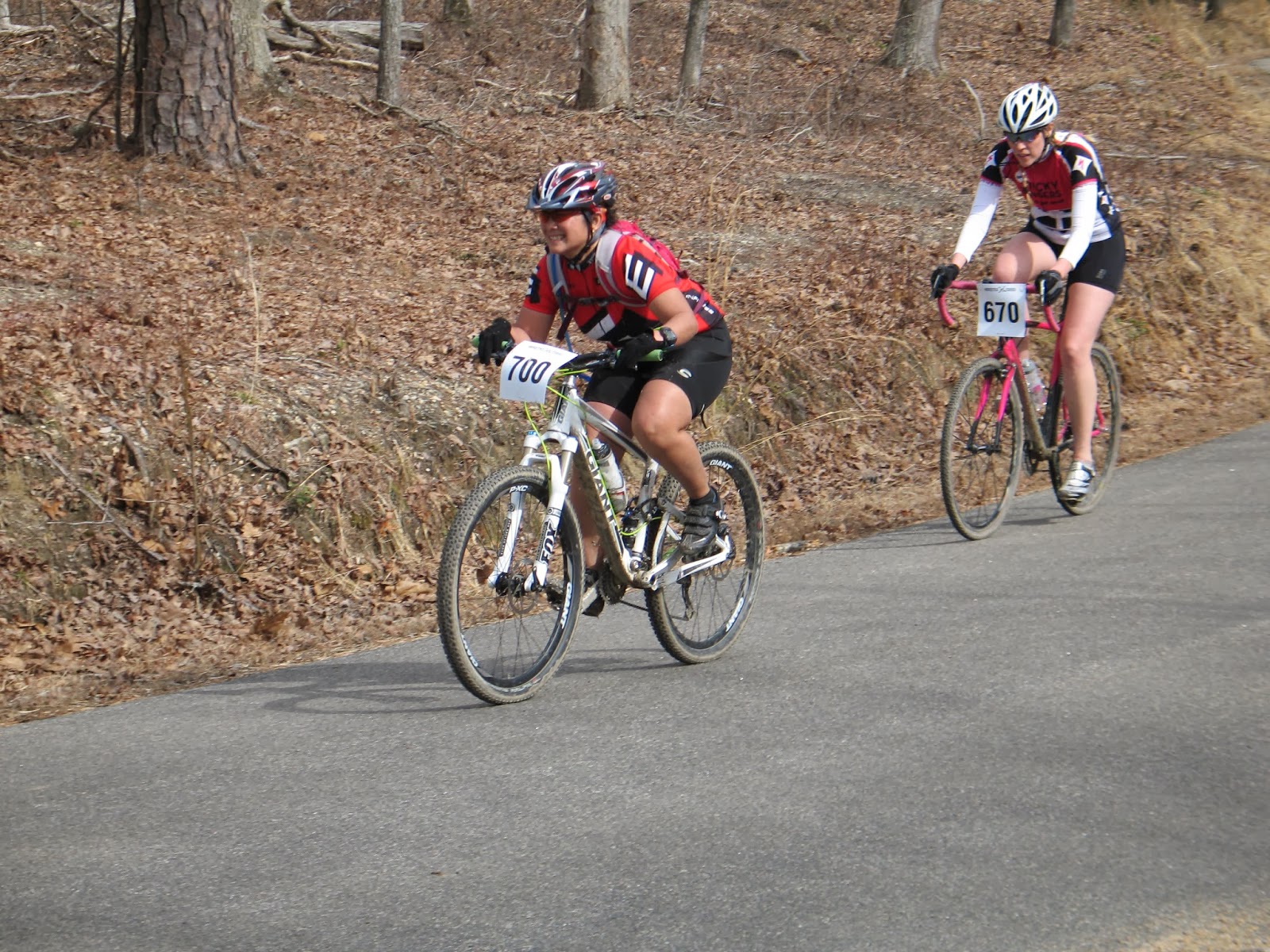 We had a great time talking and she ultimately had a great ride. When the race began, we crawled through the muddy field in a mass start situation, slowly ascended a steep paved hill and then sped through the fire roads together in the first few miles.