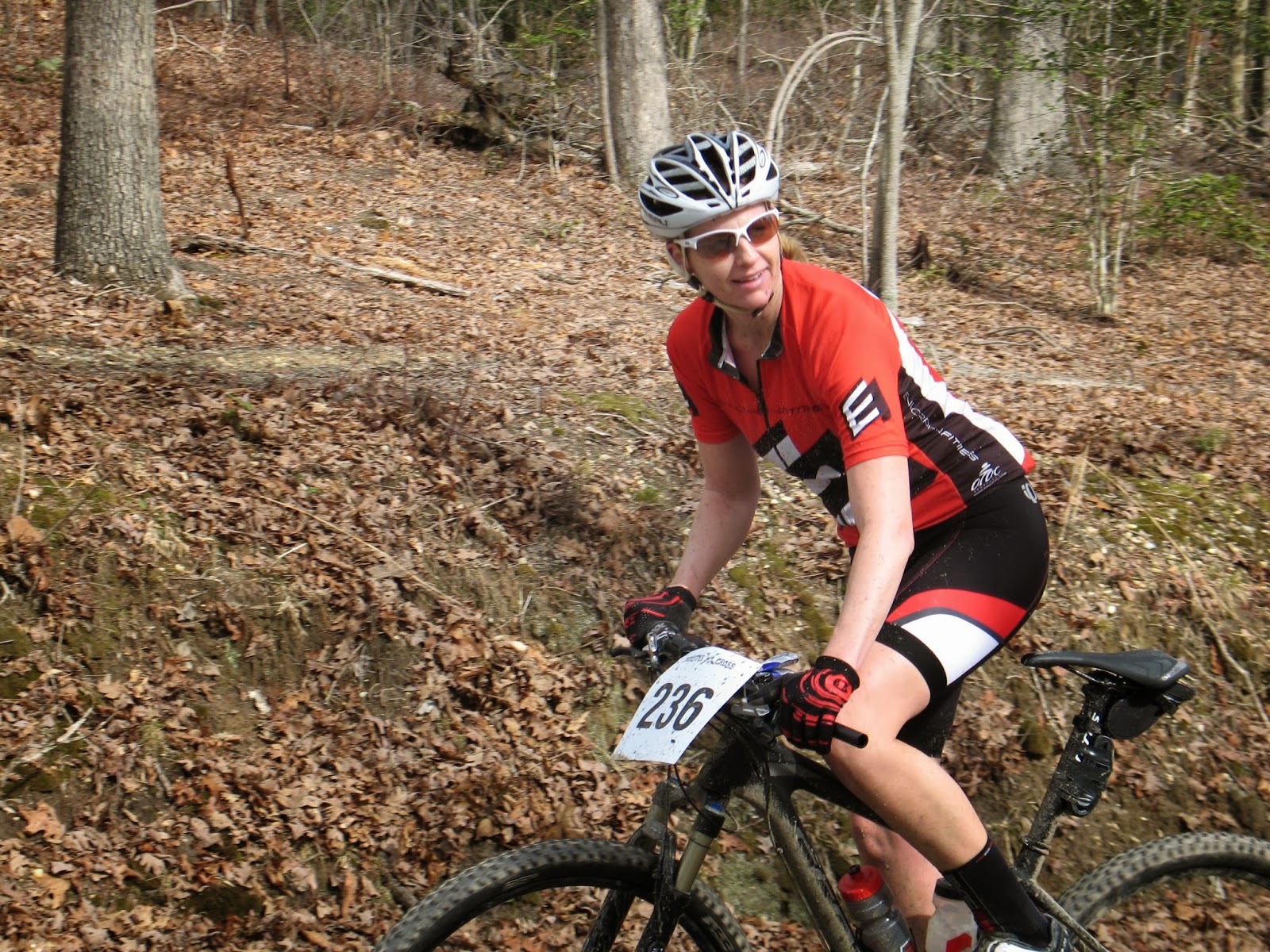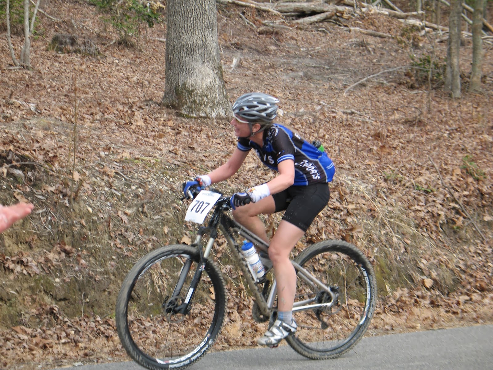 I was focusing all winter on staying aero and putting out a consistent wattage on my indoor trainer. The weather all winter was…ohh…oops…Excuses, excuses. The fact is, I was not pre-pared skill-wise to be crossing creeks etc with confidence in draft packs and to top it off, I was being pulverized by the super hard stock saddle with no cut outs in the middle, which my body was just not accustomed to. I can sit on the trainer on my TT for hours, but this MTB saddle just does not work for me and 50 mile MTB race is just NOT the day to discover this. I am hopeful the bruising (no joke!) will heal in a few days so I can continue training for triathlons.